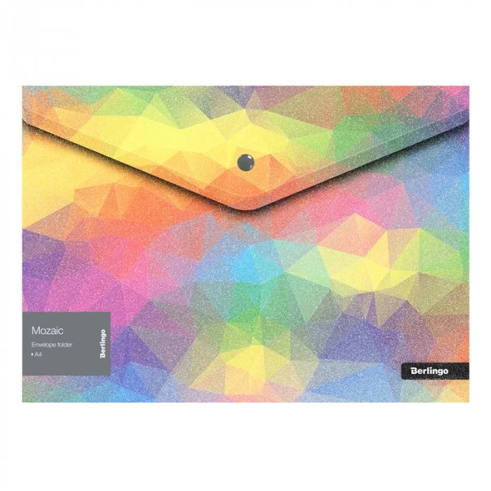 Папка-конверт на кнопке Berlingo "Mozaic", 180мкм, с рисунком, глиттер-эффект 334632