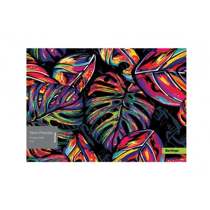 Папка-конверт на кнопке Berlingo "Neon Paradise" А4, 180мкм, с рисунком 327126