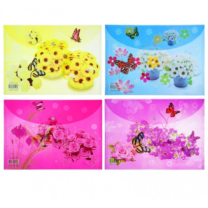 Папка-конверт на кнопке формат А4 140мкр МИКС Цветы 592654