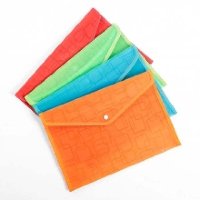 Папка-конверт на кнопке формат А4 330мкр жесткая с кантом квадраты МИКС 2909542