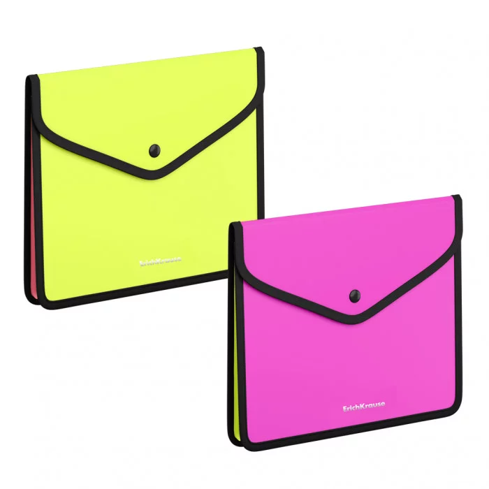 Папка-конверт на кнопке пластиковая ErichKrause® Matt Neon, обшитая, с текстильной вставкой, A5+, непрозрачный, ассорти 55419