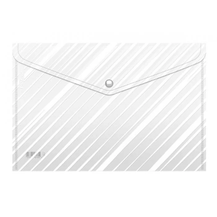 Папка-конверт на кнопке формата А4 из высококачественного полупрозрачного пластика с текстурой поверхности "зеркало", на которой не видно отпечатков пальцев и мелких царапин. Предназначена для хранения и транспортировки небольшого количества документов. Надежная застежка-кнопка обеспечивает быстрый доступ к документам. Папка вмещает до 120 бумажных листов. Размер - 232х333мм, толщина - 0.18мм. Поставляется в различных вариантах цвета без возможности выбора. Код и баркод на каждой единице товара.
