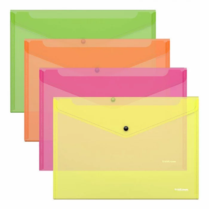 Папка-конверт на кнопке пластиковая ErichKrause Fizzy Neon, A4, полупрозрачный, ассорти 47044