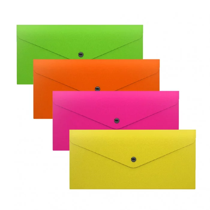 Папка-конверт на кнопке формата Travel из высококачественного полупрозрачного пластика с текстурой поверхности "зеркало". Предназначена для хранения и транспортировки небольшого количества документов. Цвет папки - ассорти: желтый, зеленый, оранжевый, розовый. Надежная застежка-кнопка обеспечивает быстрый доступ к документам. Размер - 255х130мм, толщина - 0.18мм. Код и баркод на каждой единице товара.