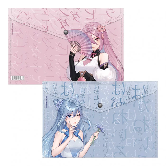 Папка-конверт на кнопке пластиковая ErichKrause Manga Girls, A4, ассорти 61156