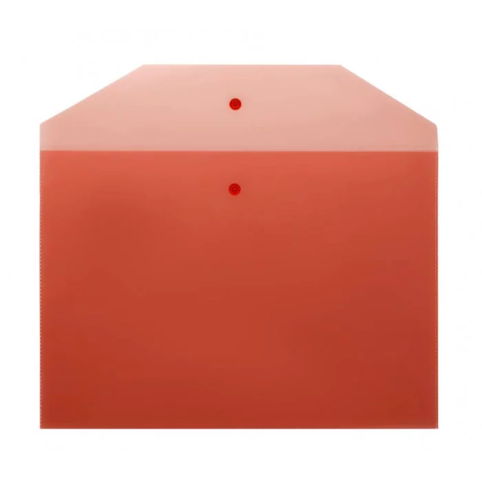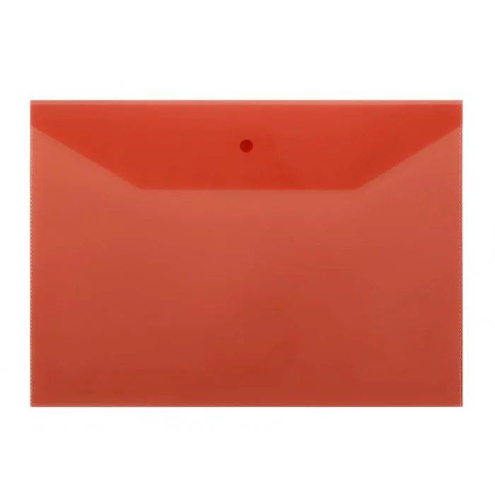 Папка-конверт на кнопке СТАММ А4, 120мкм, пластик, прозрачная, красная 355649