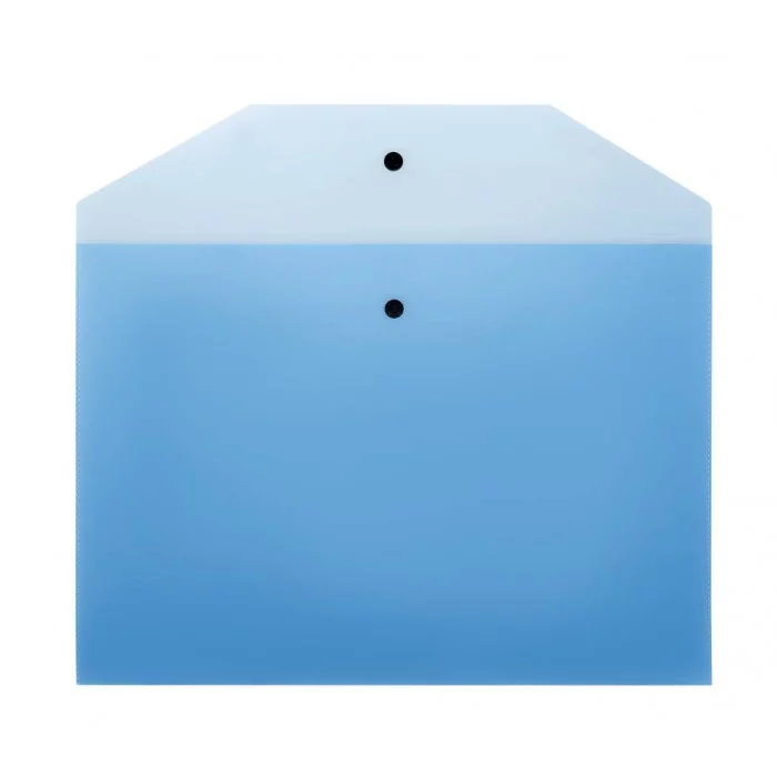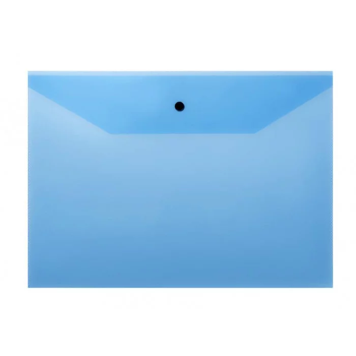 Папка-конверт на кнопке СТАММ А4, 120мкм, пластик, прозрачная, синяя 355651