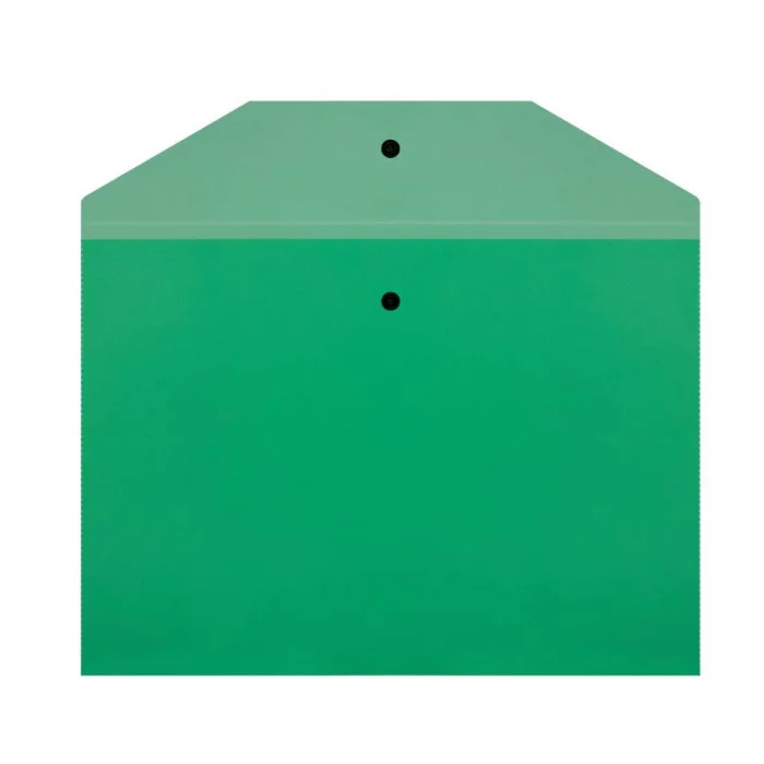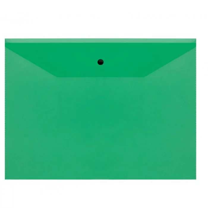 Папка-конверт на кнопке СТАММ А4, 120мкм, пластик, прозрачная, зеленая 355648