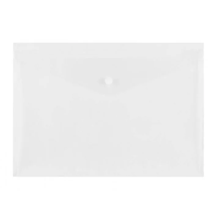 Папка-конверт на кнопке СТАММ А4, 150мкм, пластик, прозрачная, бесцветная 343170