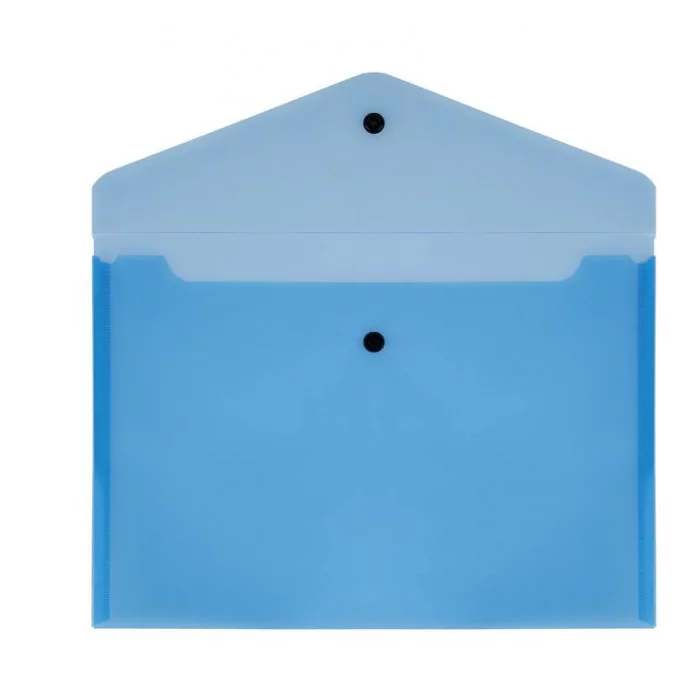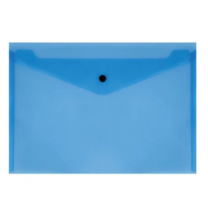 Папка-конверт на кнопке СТАММ А4, 150мкм, пластик, прозрачная, синяя 343171