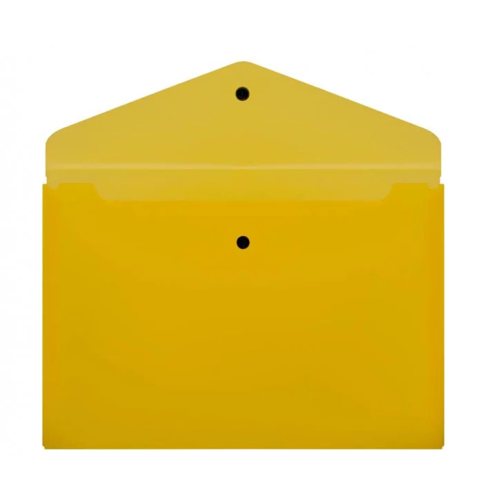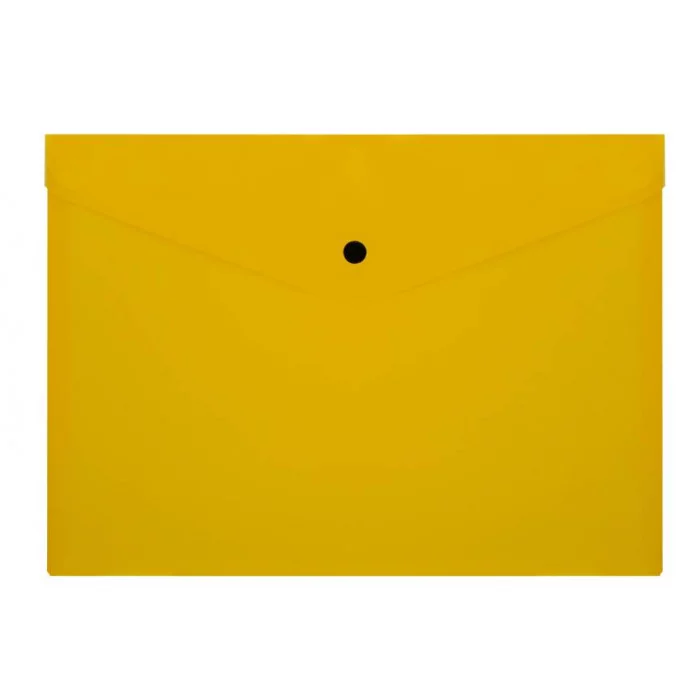 Папка-конверт на кнопке СТАММ А4, 150мкм, пластик, прозрачная, желтая 355652