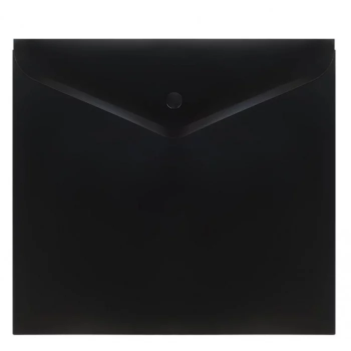 Папка-конверт на кнопке СТАММ А5+, 150мкм, пластик, непрозрачная, черная 363227