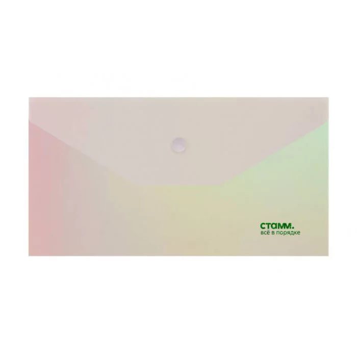 Папка-конверт на кнопке СТАММ "Сияние" С6, 180мкм, пластик, непрозрачная, белый 377057