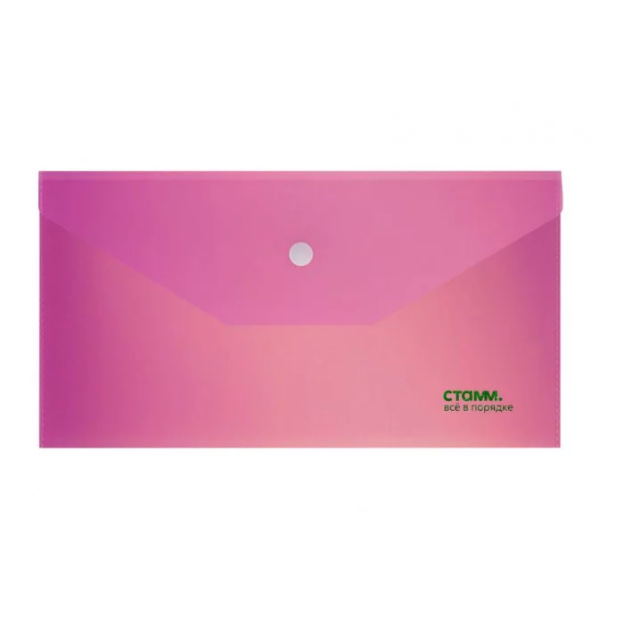 Папка-конверт на кнопке СТАММ "Сияние" С6, 180мкм, пластик, непрозрачная, розовый 377056