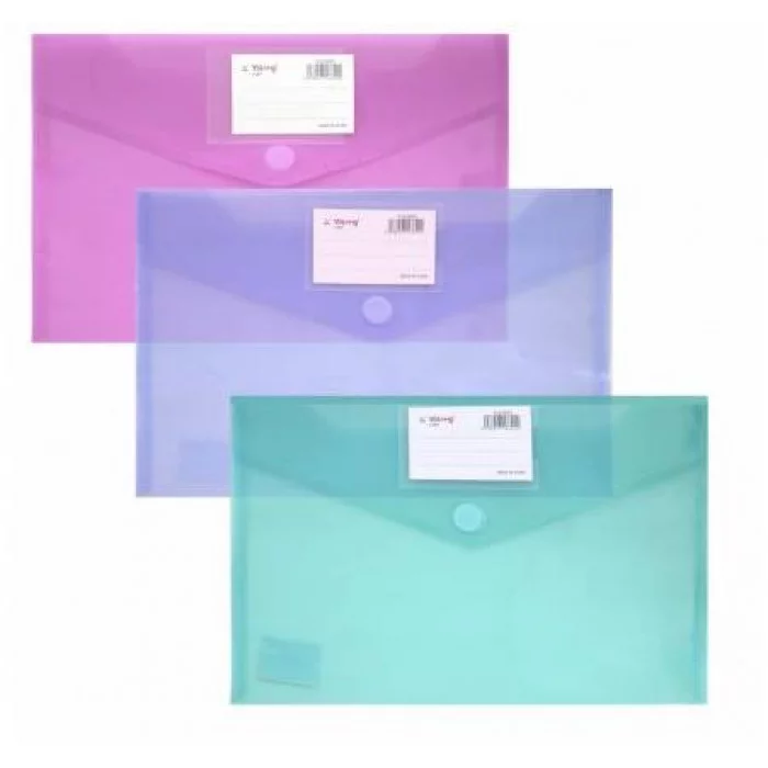 Папка-конверт на кнопке Yalong, A4, 230х330 мм, 160 мкм, карман для визитки, ассорти в коробе, прозрачная YL213923