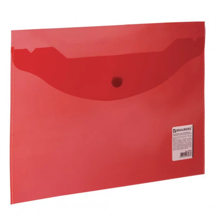 Папка-конверт с кнопкой BRAUBERG А5 240*190мм, прозрачная, красная, 0,15мм, 224026