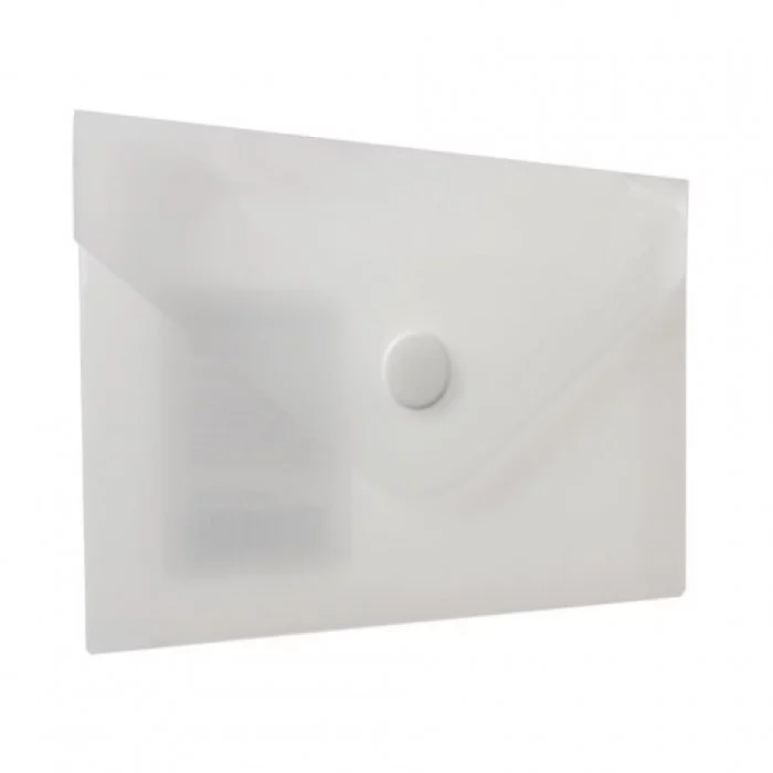 Папка-конверт с кнопкой МАЛОГО ФОРМАТА (74х105 мм), А7 (для визиток), матовая прозрачная, 18 мм BRAUBERG, 227325