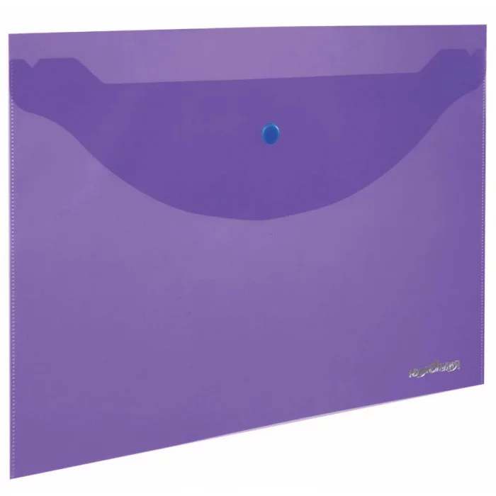 Папка-конверт с кнопкой ЮНЛАНДИЯ, А4, до 100 листов, прозрачная, фиолетовая, 18 мм, 228669