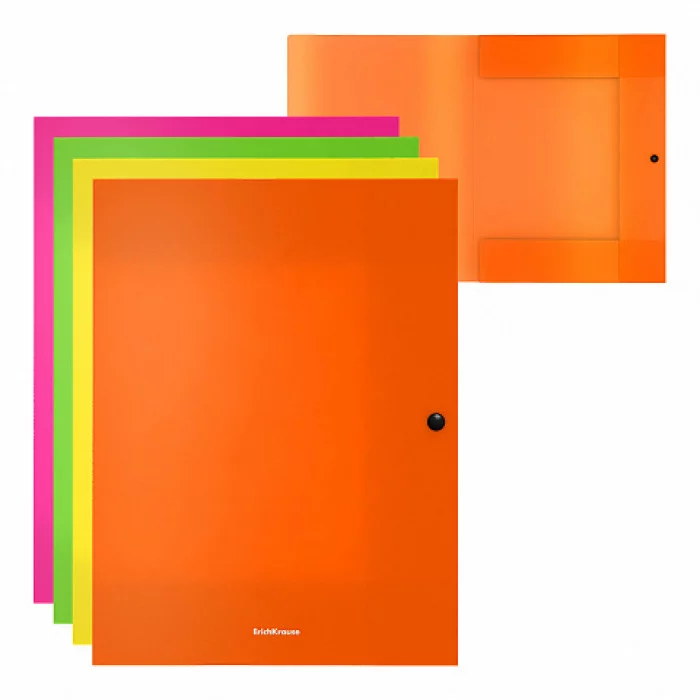 Папка на кнопке пластиковая ErichKrause Matt Neon, с 3 клапанами, 8мм, A4, ассорти 1шт 50411