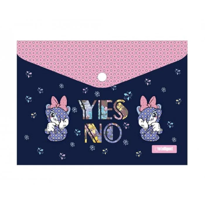 Папка с кнопкой А-5 CZ-97684 "Стесняшка" INTELLIGENT 24х17см, пластик фиолетовый с рисунком (12/1200) 326247