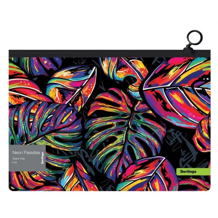 Папка-конверт на молнии Berlingo "Neon Paradise" А4, 180мкм, с рисунком 327140