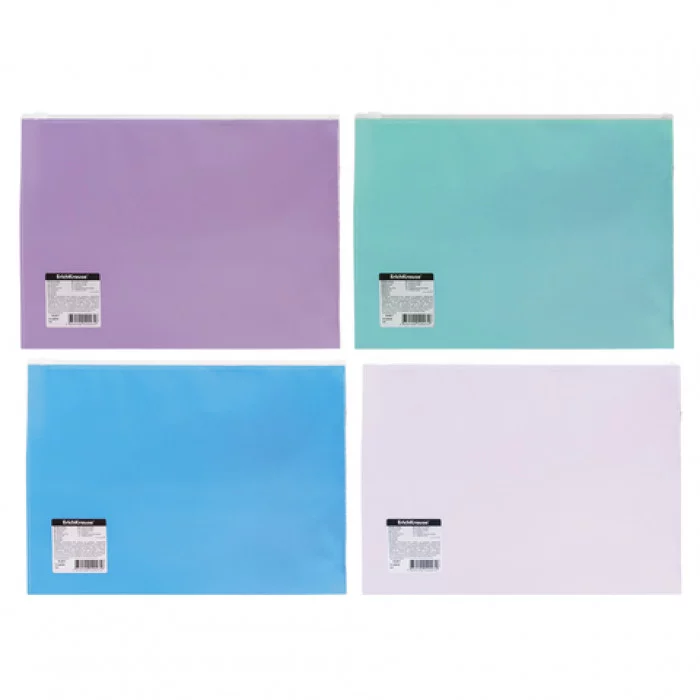 ZIP-пакет формата А4 из высококачественного полупрозрачного пластика с текстурой поверхности "апельсиновая корка", на которой не видно отпечатков пальцев и мелких царапин . Предназначен для хранения и транспортировки небольшого количества документов.Цвет ZIP-пакета – ассорти: бирюзовый, синий, фиолетовый, розовый. Удобная ZIP-молния обеспечивает быстрый доступ к бумагам. ZIP-пакет вмещает до 100 бумажных листов. Размер ZIP-пакета - 334х246мм, толщина материала - 0.14мм. Поставляется в различных вариантах цвета/дизайна без возможности выбора. Код и баркод на каждой единице товара.