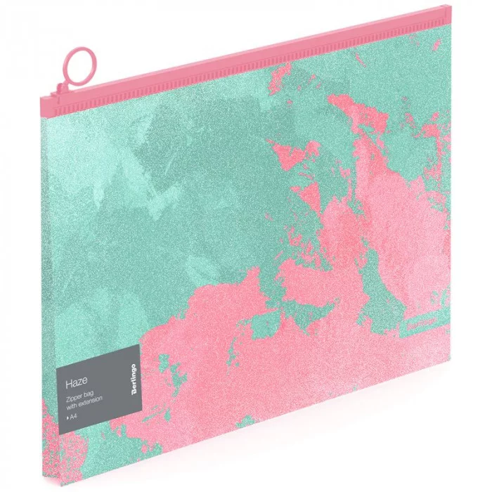 Папка-конверт на молнии с расширением Berlingo "Haze" А4, 180мкм, мятная/розовая, с рисунком, с эффектом блесток 334656