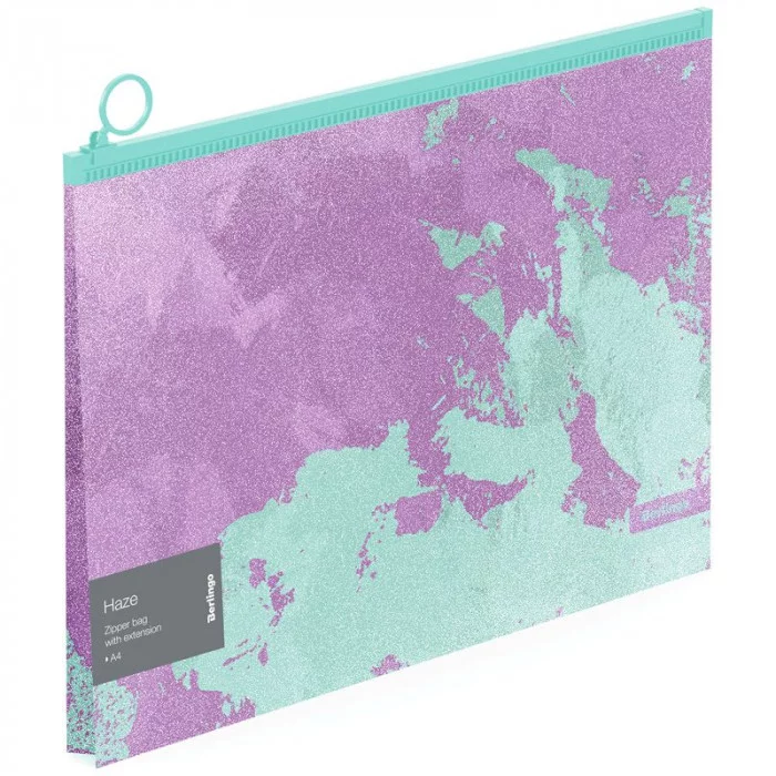Папка-конверт на молнии с расширением Berlingo "Haze" А4, 180мкм, сиреневая/мятная, с рисунком, с эффектом блесток 334658