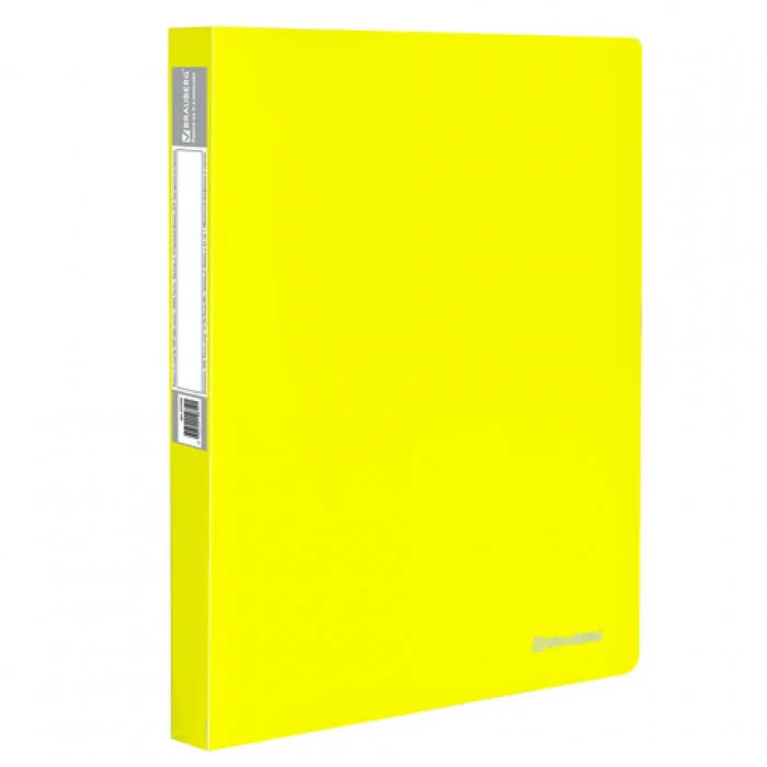 Папка на кольцах BRAUBERG предназначена для временного или длительного хранения, систематизации, архивирования документов. Такие папки используются в работе офисными сотрудниками различных специальностей, направлений, должностей. Папка стандартного формата А4 вмещает до 170 листов. Изготовлена из высококачественного полипропилена толщиной 0,7 мм с гладкой фактурой. Допускается влажная обработка поверхности. Внутренняя сторона обложки снабжена прозрачным карманом. Для идентификации имеется сменный бумажный корешок. Ширина корешка составляет 25 мм. Папка оснащена двумя кольцами, которые обеспечивают надежное хранение документов. В неё можно вставить файлы или проколотые дыроколом листы и, при необходимости, заменить их на другие. Количество колец: 2. Формат: А4. Положение папки: вертикальное. Вместимость: 170 листов. Ширина корешка: 25 мм. Серия: Neon. Диаметр колец: 16 мм. Наличие кармана на внутренней стороне папки: да. Допустима влажная обработка: да. Материал: полипропилен. Толщина материала: 0.7 мм. Фактур