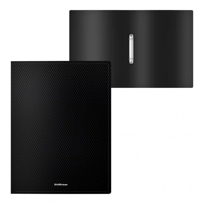 Папка на 2 кольцах пластиковая ErichKrause Diamond Total Black, 24мм, A4, черный 55146