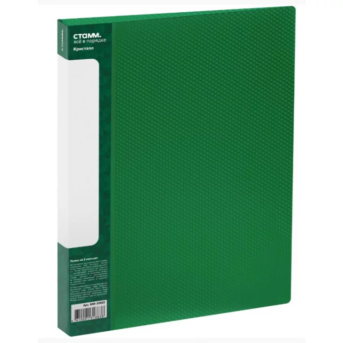 Папка на 2 кольцах СТАММ "Кристалл" А4, 40мм, 700мкм, пластик, зеленая 373343