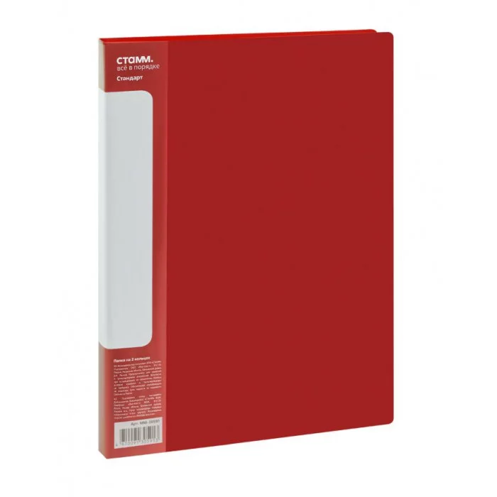 Папка на 2 кольцах СТАММ "Стандарт" предназначена для хранения перфорированных документов формата А4. Цвет папки – красный. Изготовлена из качественного полипропилена толщиной 700 мкм с текстурой «песок». Размер изделия составляет 310*250 мм. Ширина корешка 25 мм позволяет вмещать в папку до 120 листов. Кольцевой механизм, состоящий из 2 колец диаметром 16 мм, надёжно держит документы. На корешке и внутренней стороне папки имеется карман. Папка упакована в индивидуальный пакет.