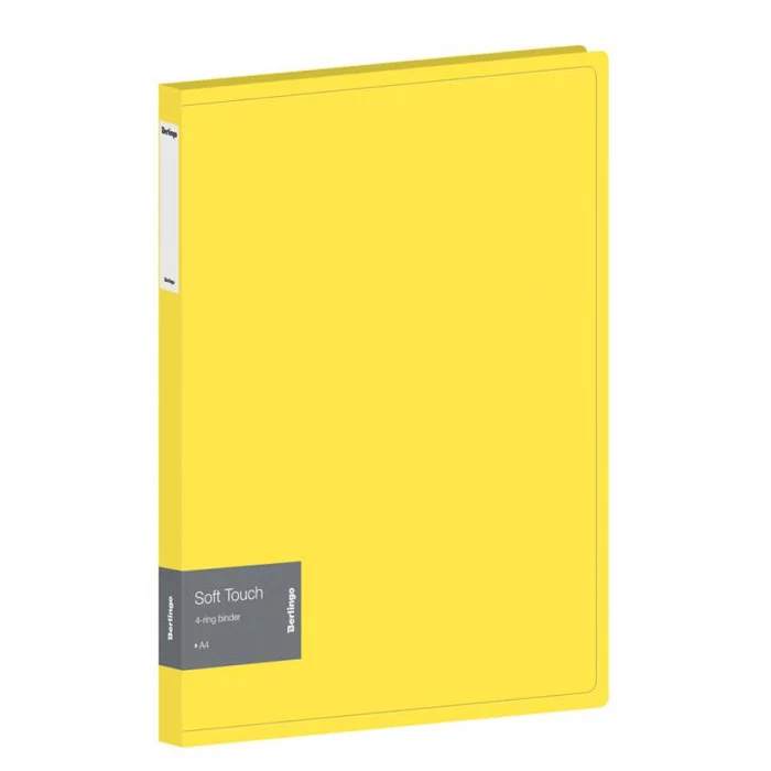 Папка на 4 кольцах Berlingo "Soft Touch", 24мм, 700мкм, желтая, D-кольца, с внутр. карманом 338224