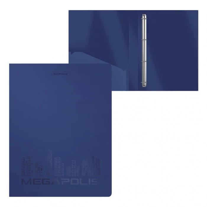 Папка на 4 кольцах пластиковая ErichKrause® MEGAPOLIS, 24 мм, А4, синий 49981