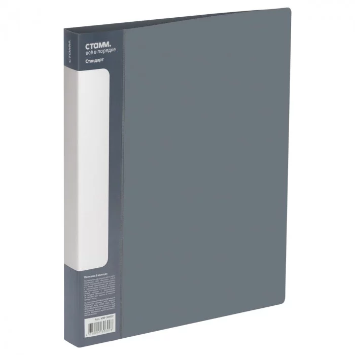 Папка на 4 кольцах СТАММ "Стандарт" А4, 25мм, 700мкм, пластик, серая 355288