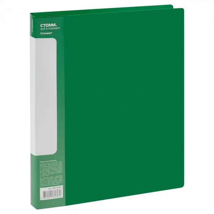 Папка на 4 кольцах СТАММ "Стандарт" А4, 40мм, 700мкм, пластик, зеленая 368361