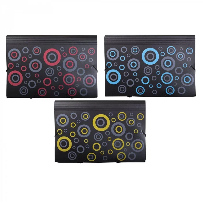 Папка-картотека на резинке Alingar, A4, "Black C", 328х235х32 мм, 600 мкм, 13 отделений, цветная, матовая ALBC571/BC575