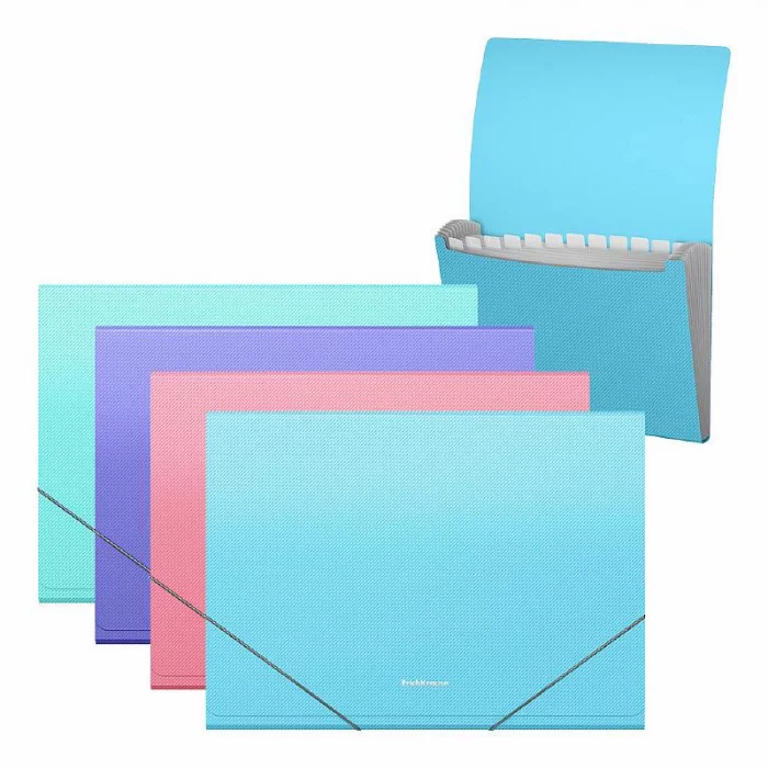 Папка-картотека пластиковая ErichKrause Diagonal Pastel, с 13 отделениями, A4, ассорти 61212