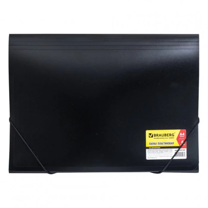 Папка на резинках BRAUBERG "Business", А4, 7 отделений, пластиковый индекс, черная, 0,5 мм, 224145
