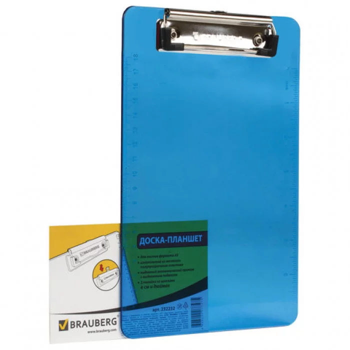 Доска-планшет МАЛОГО ФОРМАТА (155х228 мм), А5, BRAUBERG "Energy" с прижимом, пластик, 2 мм, СИНЯЯ, 232232
