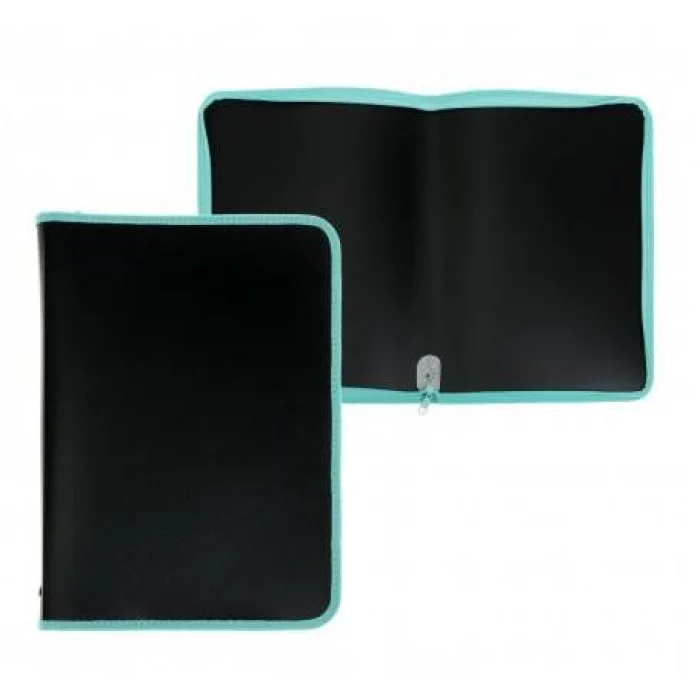 Папка 1 отделение, А4 325х230х25 мм, Пчелка, пластик, без дизайна, молния вокруг, "Черная/Мятная" ПМ-А4-11