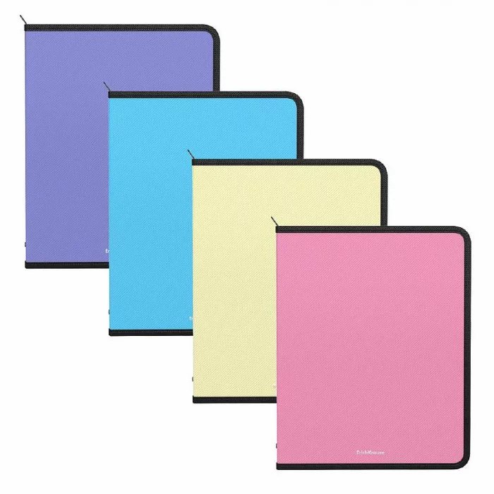 Папка для тетрадей на молнии пластиковая с дополнительным карманом из сетки ErichKrause® Diagonal Pastel, A5+, ассорти 55063