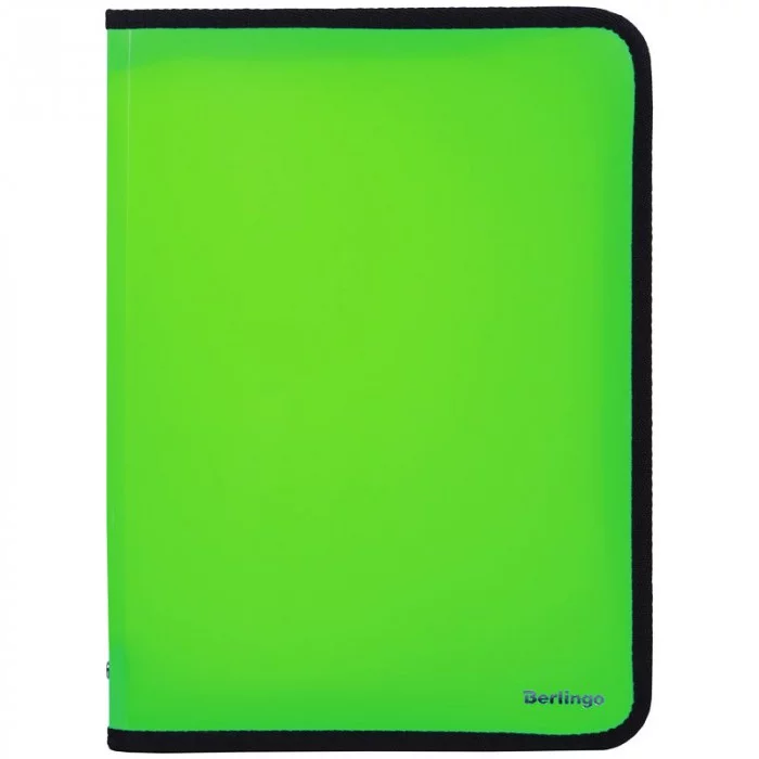 Папка на молнии Berlingo, А4, 500мкм, зеленый неон 320218