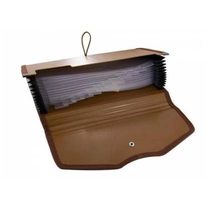 Папка-картотека Alingar 260х140 мм на пуговице пластик 900 мкм 12 отделений коричневый 1шт AL12823/3