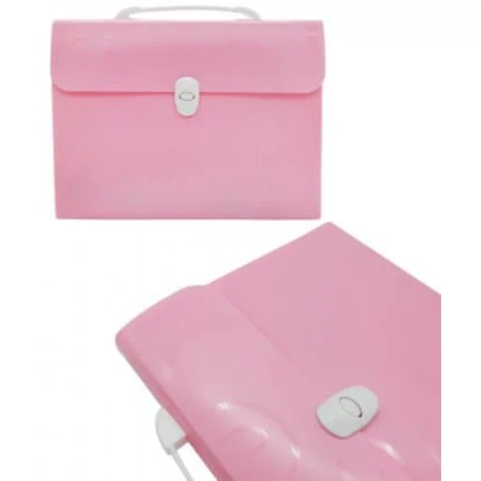 Папка портфель 12 отд. DD-204 Розовый пластиковый с узором, с застежкой и ручкой 329300