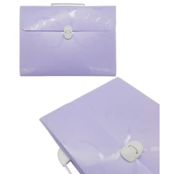 Папка портфель 12 отд. DD-205 Сиреневый пластиковый с узором, с застежкой и ручкой 329301