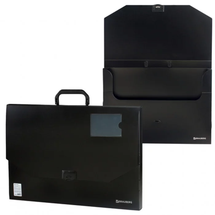 Папка-портфель пластиковая БОЛЬШОГО ФОРМАТА BRAUBERG "ПОРТФОЛИО", А3 (445х310х30 мм), черная, РОССИЯ, 226023