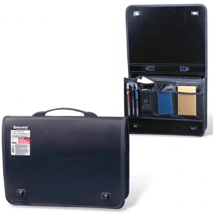 Портфель пласт. BRAUBERG КОНТРАКТ А4 370*270*90 мм, 1отделение, 2 накладных кармана, черный, 223078