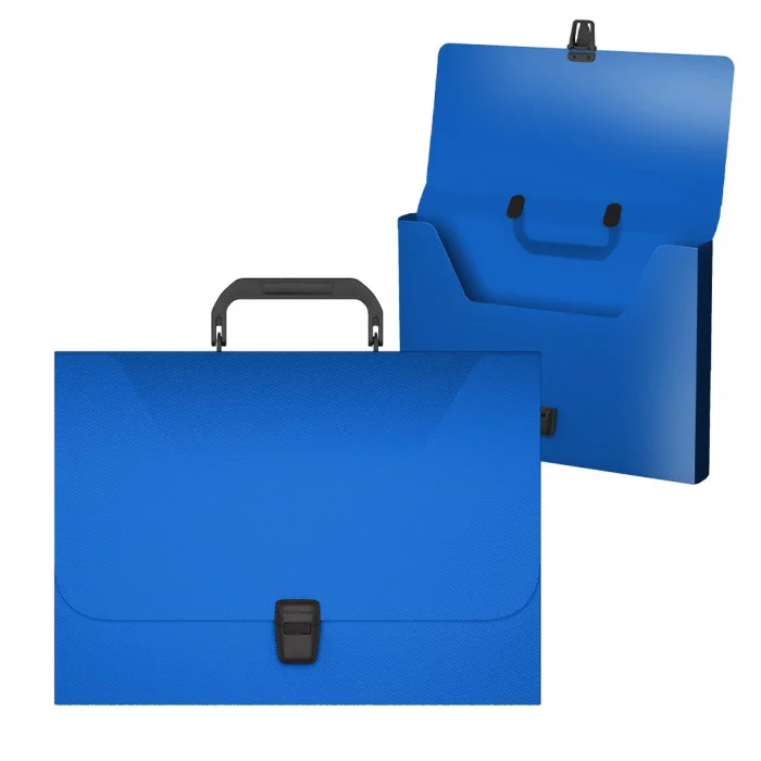 Портфель формата А4 из высококачественного пластика с текстурой поверхности "диагональ", на которой не видно отпечатков пальцев и мелких царапин. Предназначен для транспортировки документов. Цвет портфеля - синий. Портфель вмещает до 350 бумажных листов. Оснащен фирменным замком и ручкой с логотипом ErichKrause®. Размер - 335х230х35мм, толщина - 0.7мм. Код и баркод на каждой единице товара.