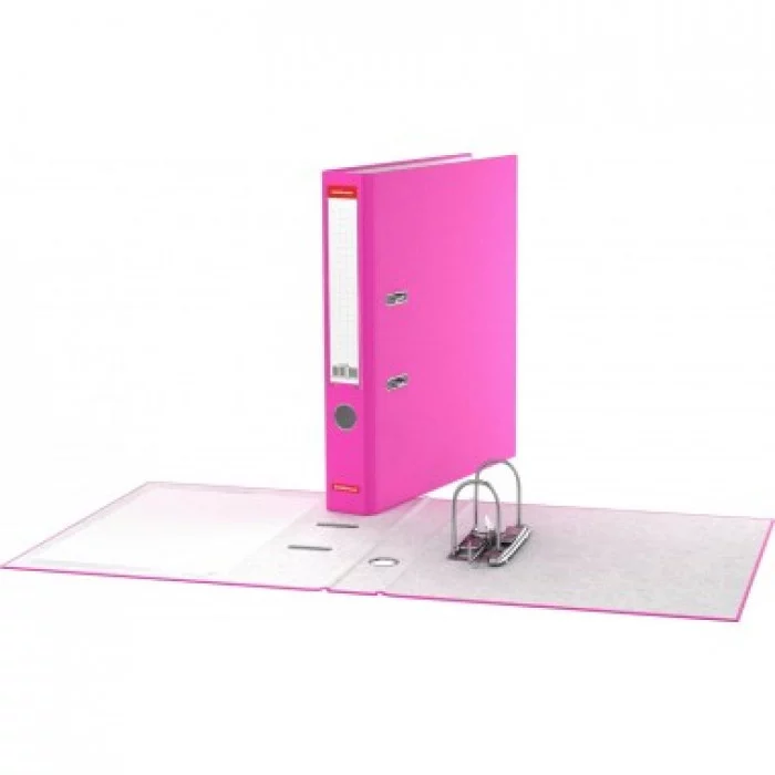 Папка - регистратор формата А4 снабжена стальным арочным механизмом с никелевым покрытием. Изготовлена из плотного картона толщиной 2 мм, покрытого бумагой со структурным тиснением и водоотталкивающей поверхностью. Корешок папки шириной 50 мм оснащен прозрачным пластиковым карманом со сменной этикеткой для маркировки. Для удобства использования на корешке имеется металлическое кольцо для захвата. Металлические фиксаторы удерживают папку в закрытом виде даже при максимальном наполнении. Вместительность до 350 листов бумаги плотности 80 г/м². На форзаце есть шаблон для оглавления. Коллекция представлена в ярких неоновых цветах.